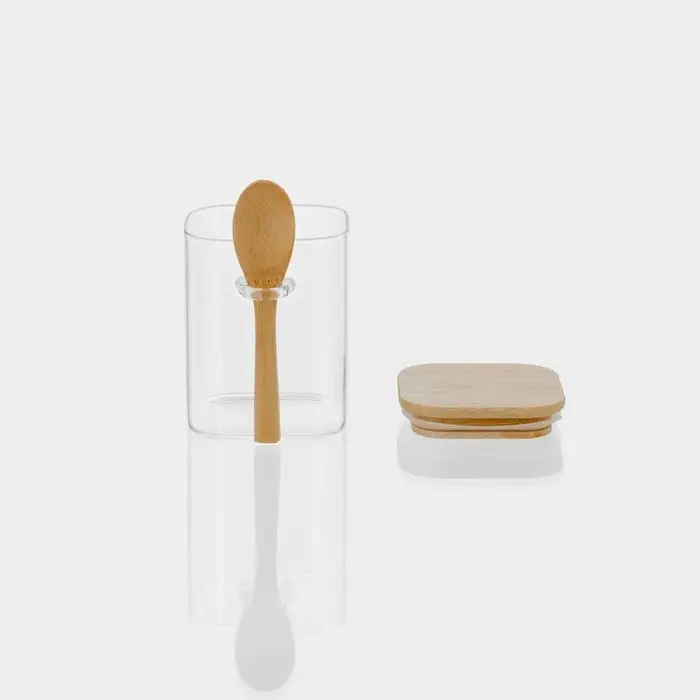 Банка для сыпучих BellaTenero «Эко», 500 мл, 10.5×8.2×10.5 см, с бамбуковой крышкой и ложкой, стекло, прозрачная