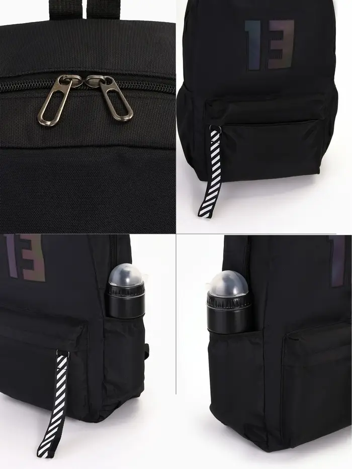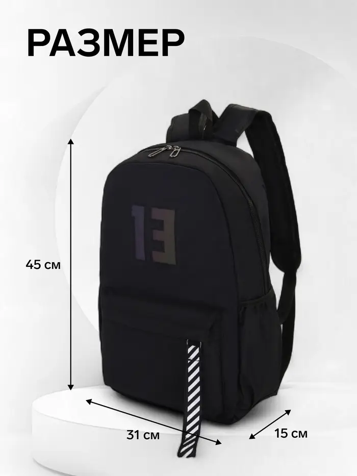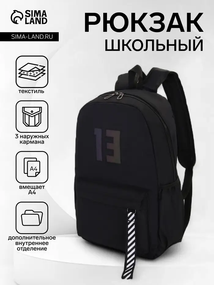 Рюкзак молодёжный на молнии, с карманами, с цифрой 13, размер 31×15×45 см, чёрный