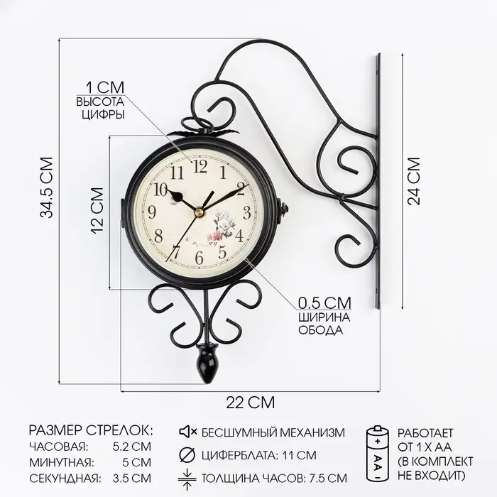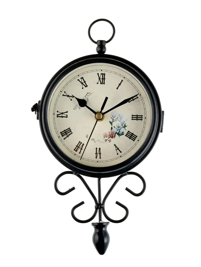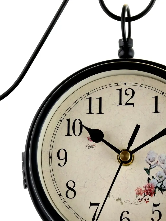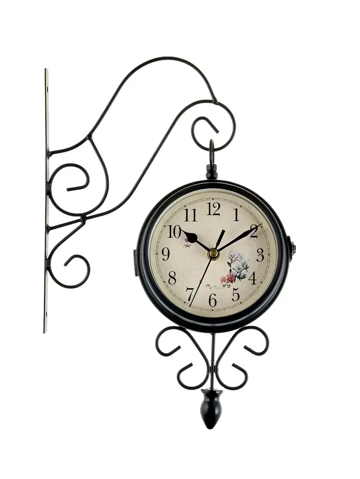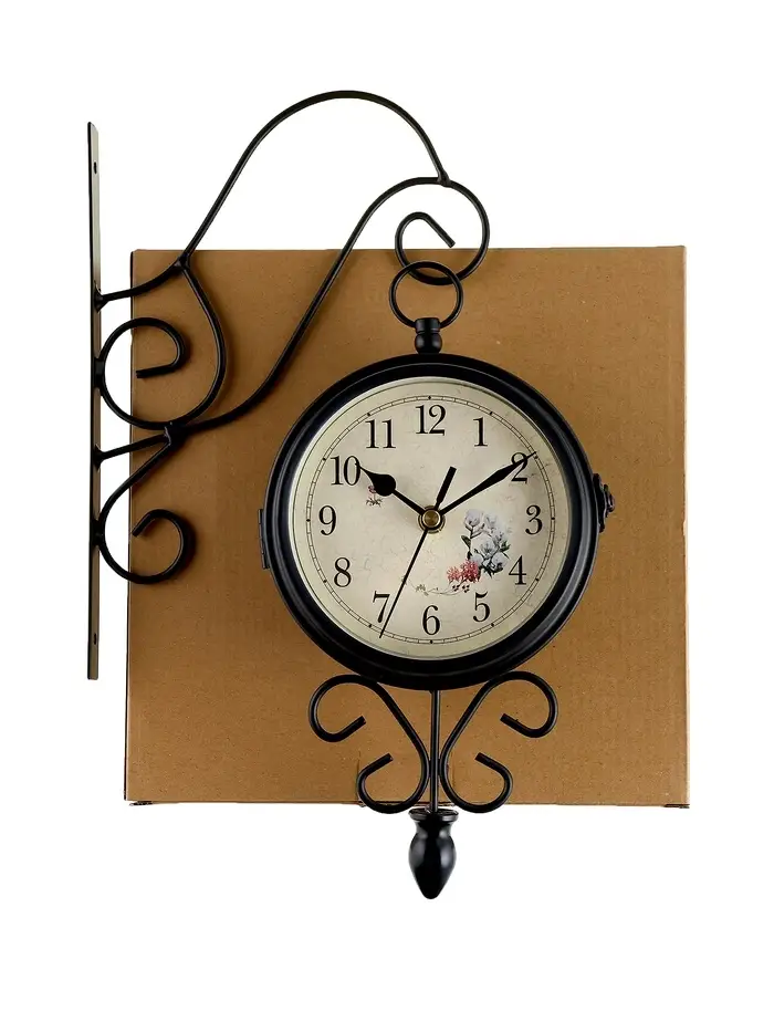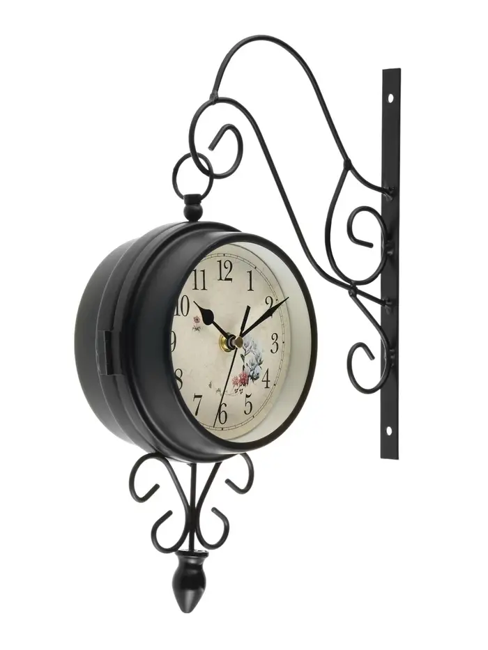 Эти часы прекрасно подойдут для прихожей, гостиной или балкона. Двусторонний циферблат позволяет видеть время с любого ракурса, а компактные размеры и элегантный дизайн делают модель универсальной даже для небольших помещений. Плавный ход стрелок создаёт уютную, тихую атмосферу.