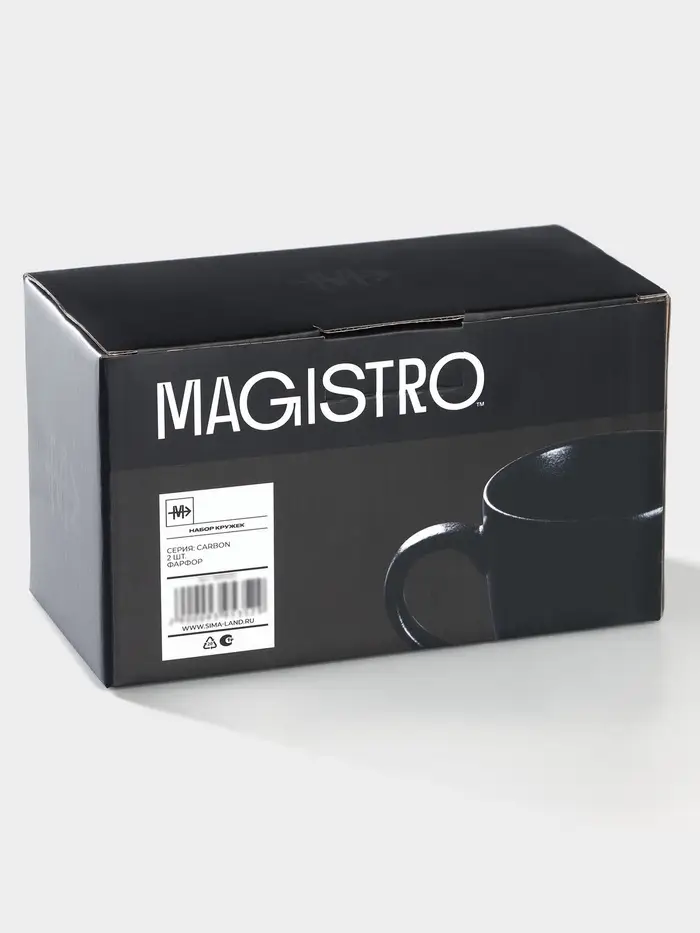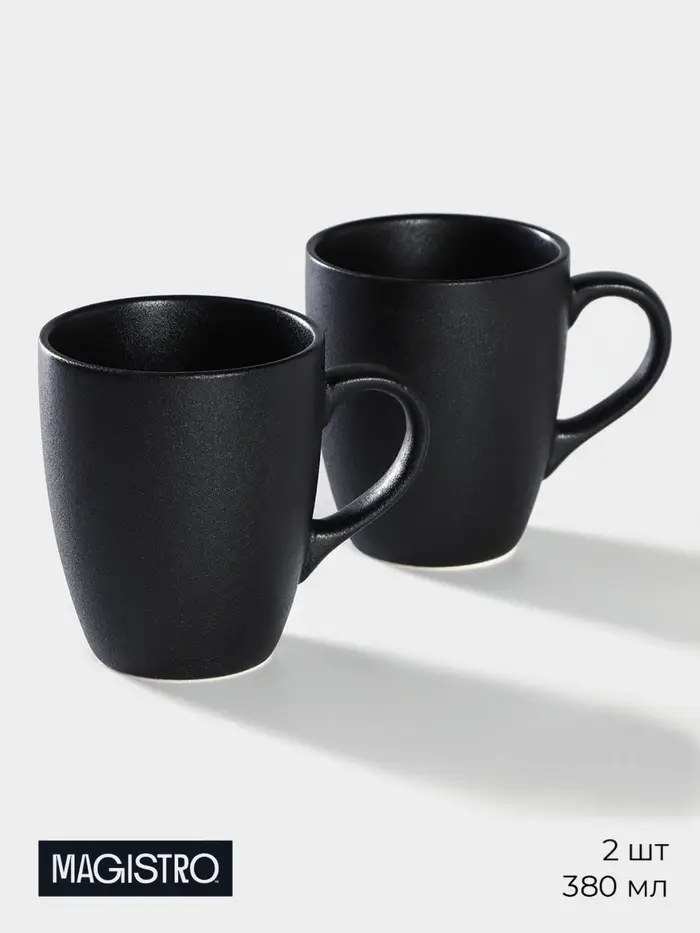 Кружки Magistro Carbon, набор 2 шт., 380 мл, фарфор, чёрная