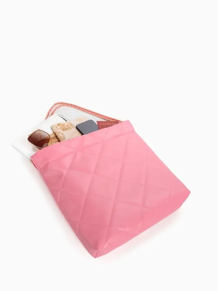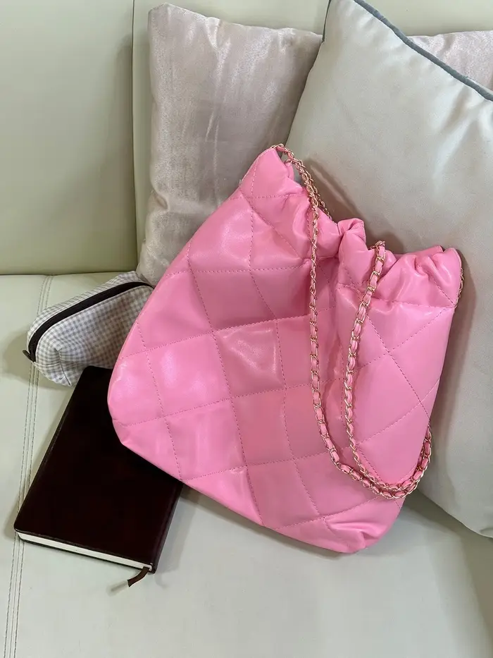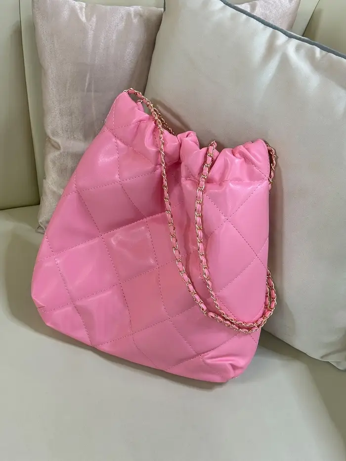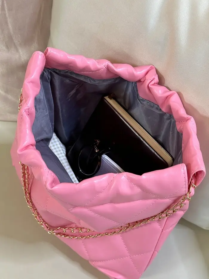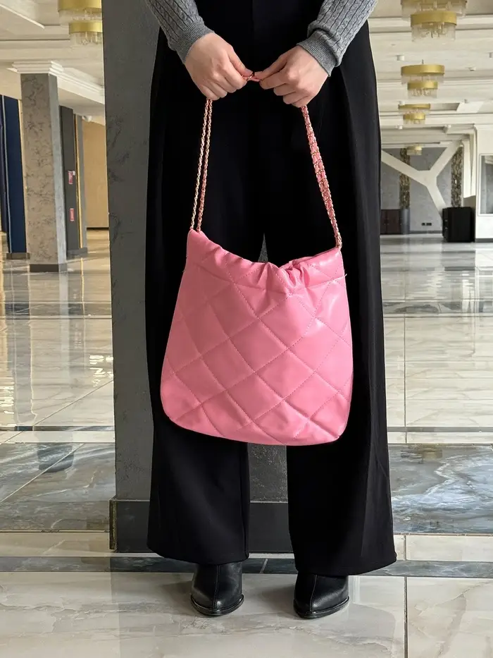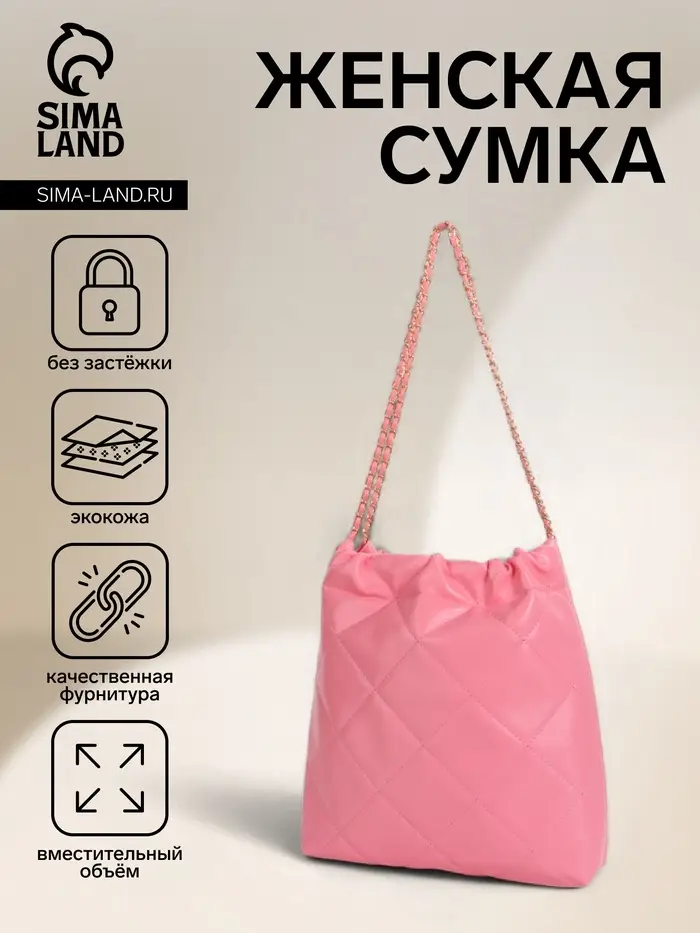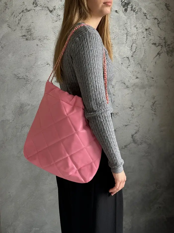 Сумка - мешок женская без застёжки, 35×7×33 см, со стёжкой, розовая