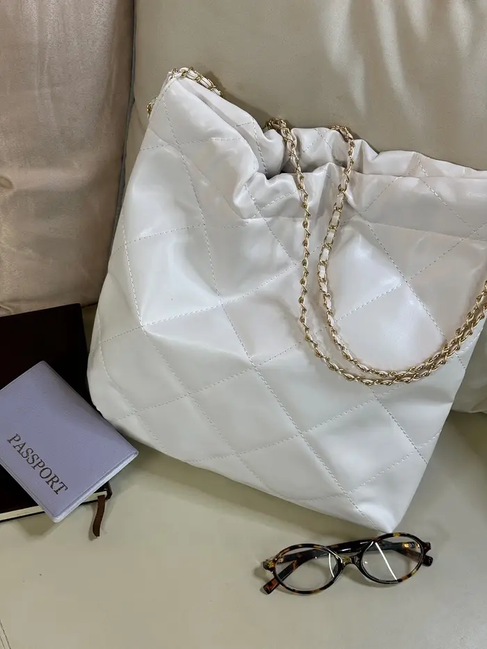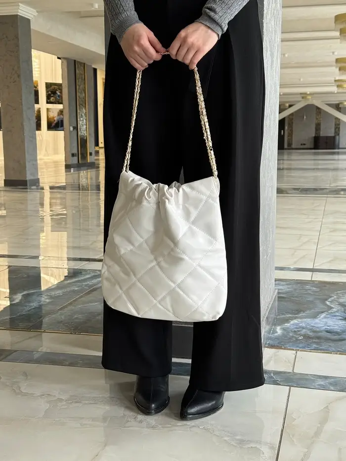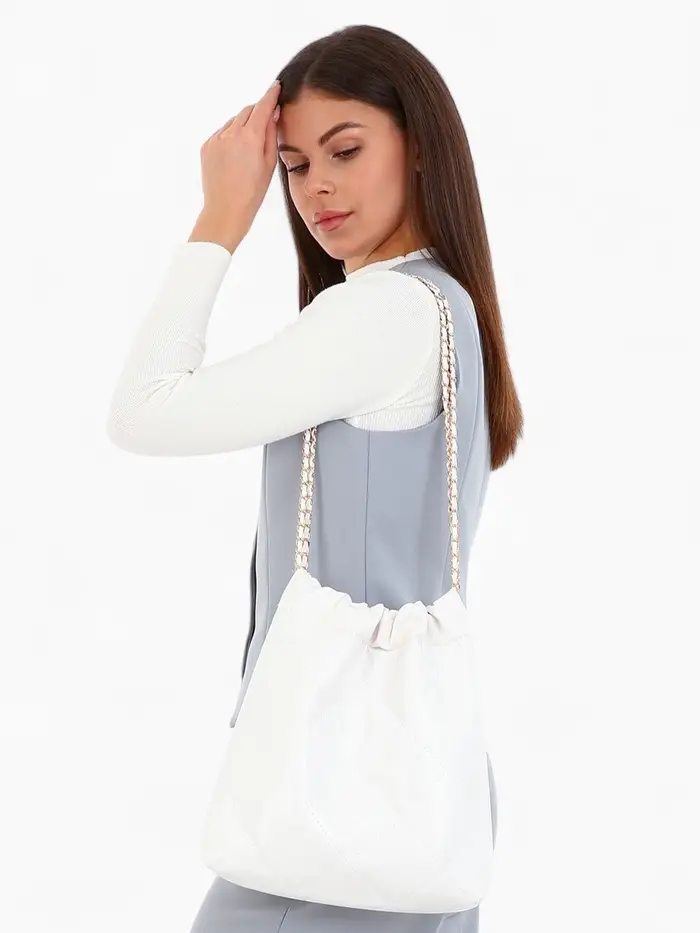 Сумка - мешок женская без застёжки, 35×7×33 см, со стёжкой, белая