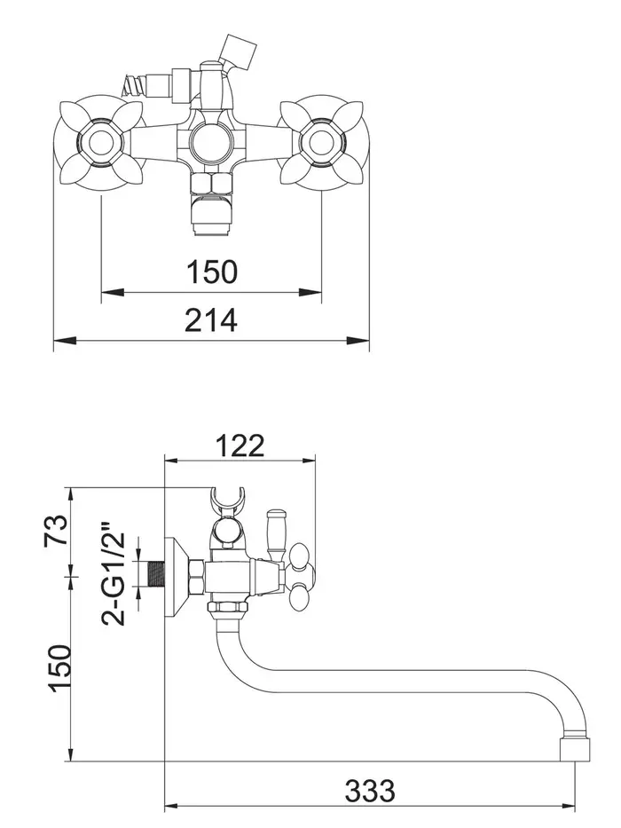 Смеситель для ванны ZEIN Z0155, кран-букса 1/2", душевая лейка и шланг, хром