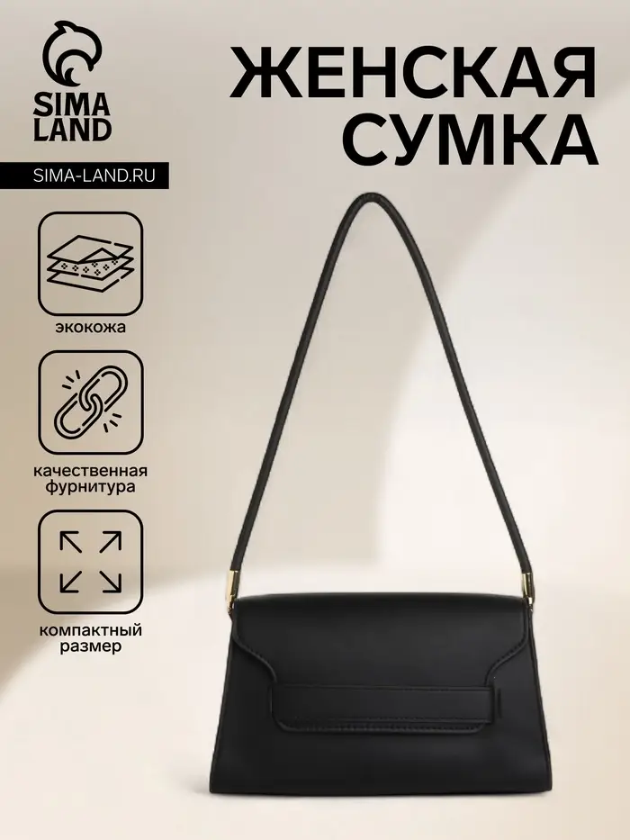 Сумка женская мессенджер без застёжки, 26×7×15 см, чёрная