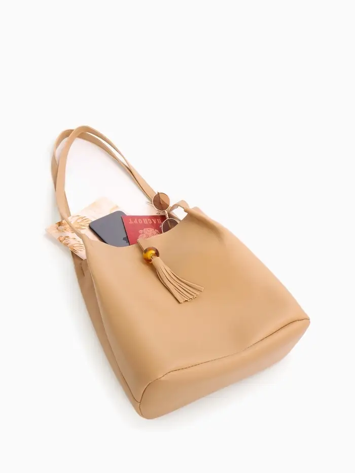 Сумка - мешок женская на магните, 25×10×26 см, бежевая