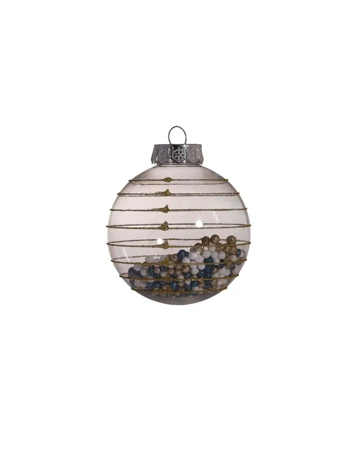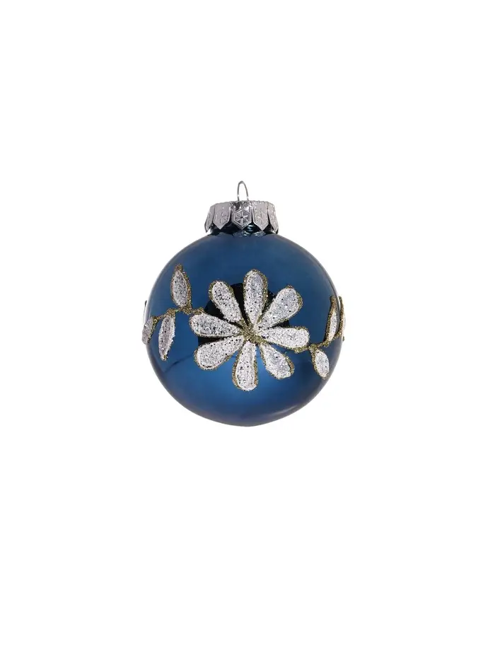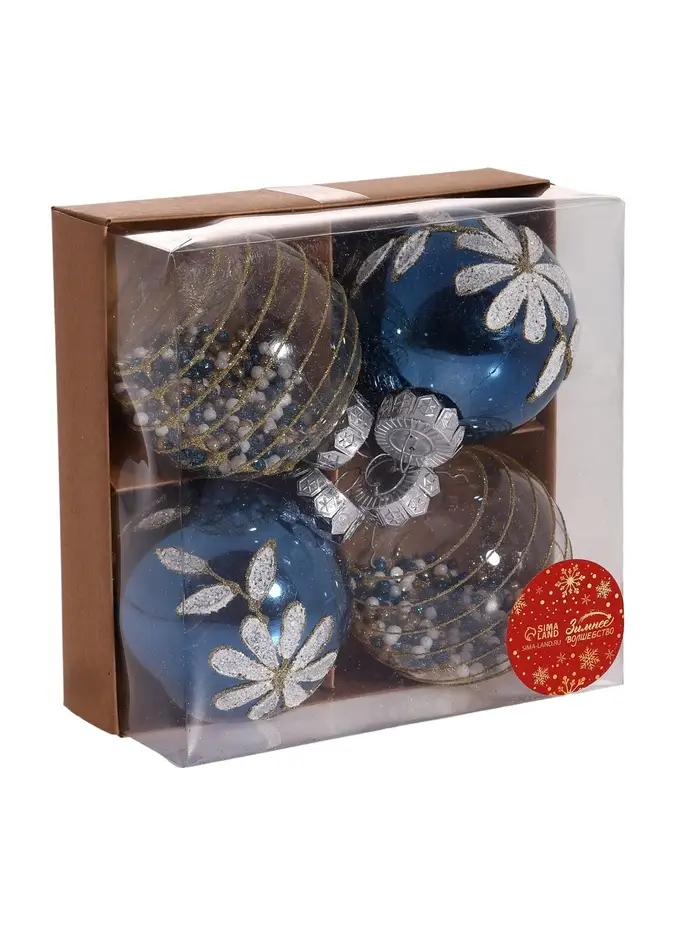 Набор из 4 новогодних шаров диаметром 8 см сочетает прозрачные и синие оттенки с изящным рисунком, выполненным в стиле фьюжн. Эти украшения добавляют глубину и современный акцент в праздничное оформление ёлки.