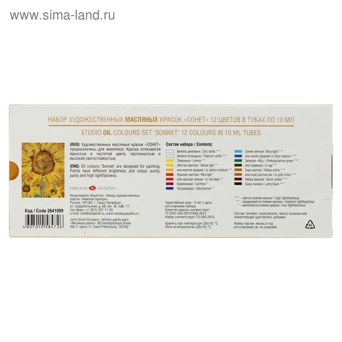 Масляные художественные краски серии "Сонет" разработаны по традиционным технологиям с использованием современных материалов и предназначены для живописи.
