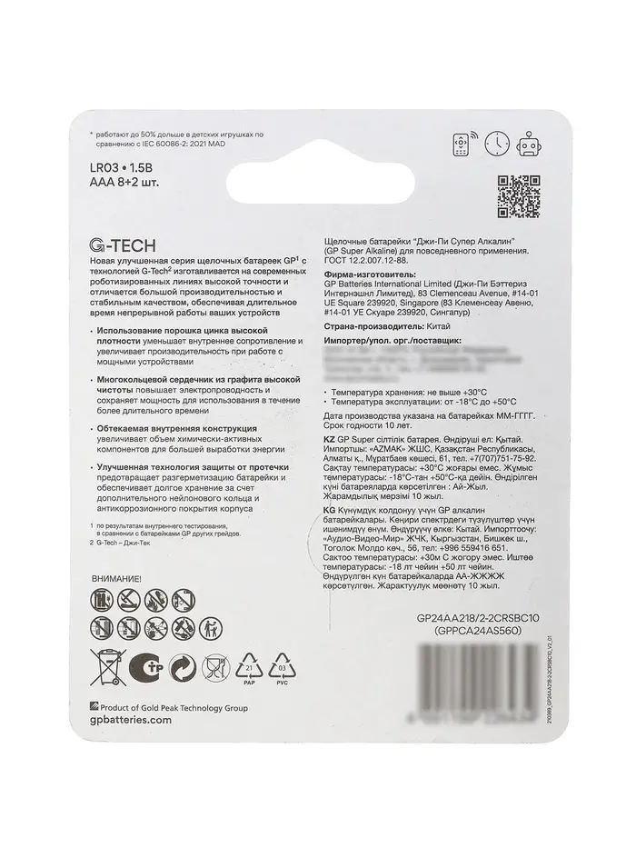 Батарейка алкалиновая GP Super, AAA, LR03-10BL, 1.5 В, 8+2 шт.
