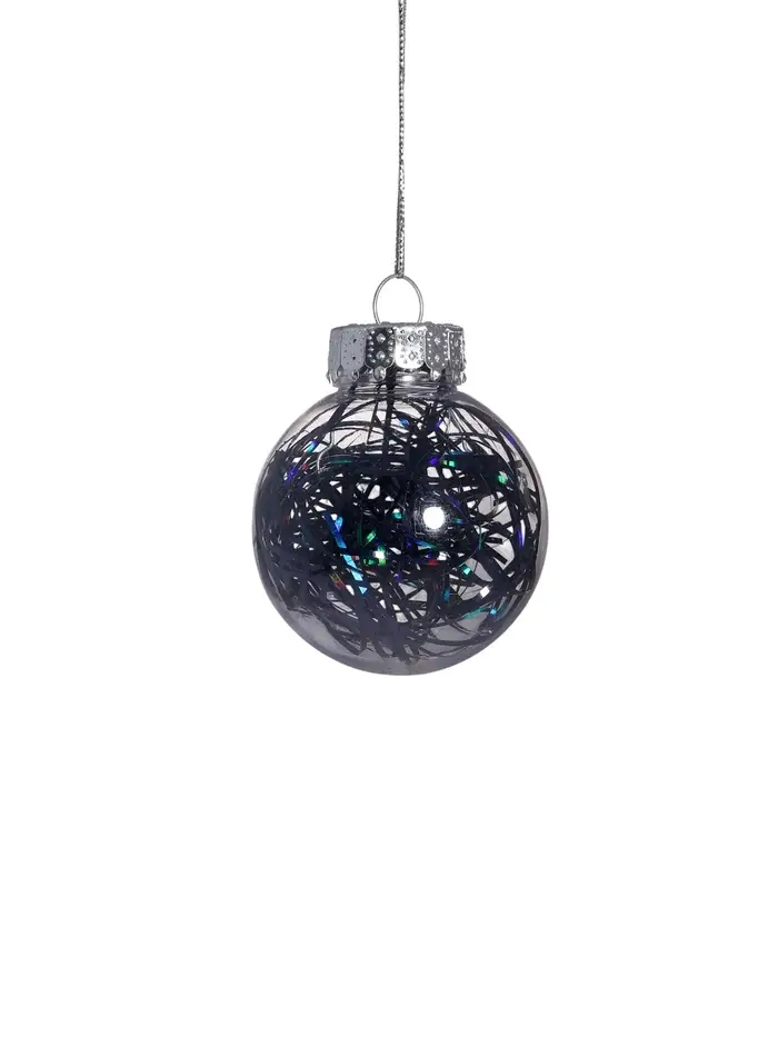 Синие прозрачные шары с узорами напоминают о морозном сиянии и мерцании зимних огней. Их оформление помогает сформировать атмосферу спокойствия и изящества, делая новогодний декор лёгким и выразительным.