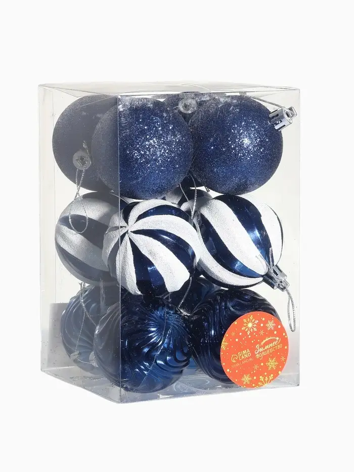 Эти шары создают образ Нового года, где белый и синий работают вместе на спокойствие, порядок и добрую атмосферу. Полосы и однотонные поверхности дополняют друг друга, делая ёлку частью вашей зимней истории. Используйте их как основу или как дополнение к уже имеющемуся декору — они одинаково хорошо усиливают настроение праздника и семейного тепла.
