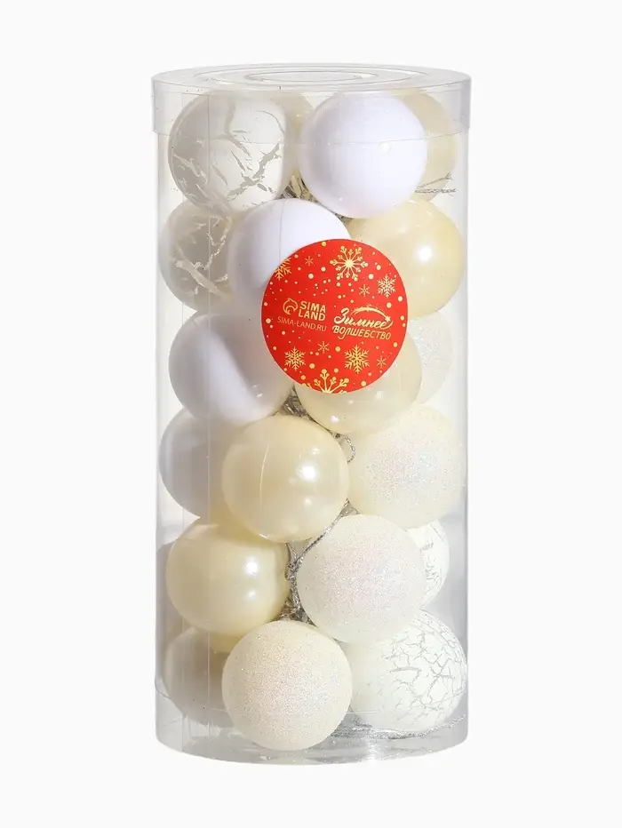 - В комплекте 24 шара, что позволяет создать полноценный и гармоничный декор для ёлки.