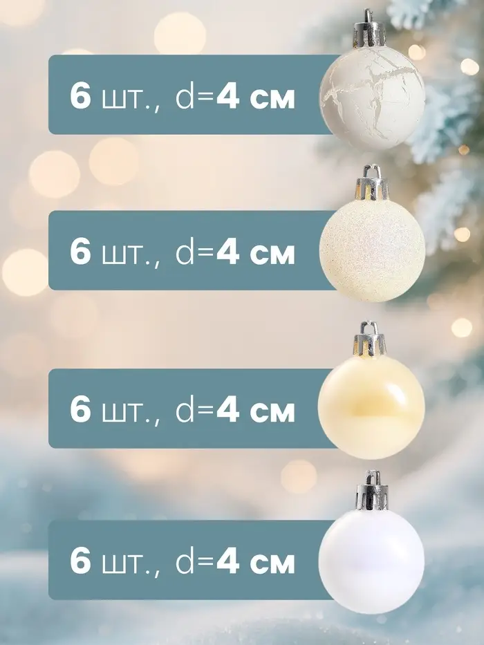 - Идеальный размер в 4 см делает шары универсальными для любого типа ёлки.