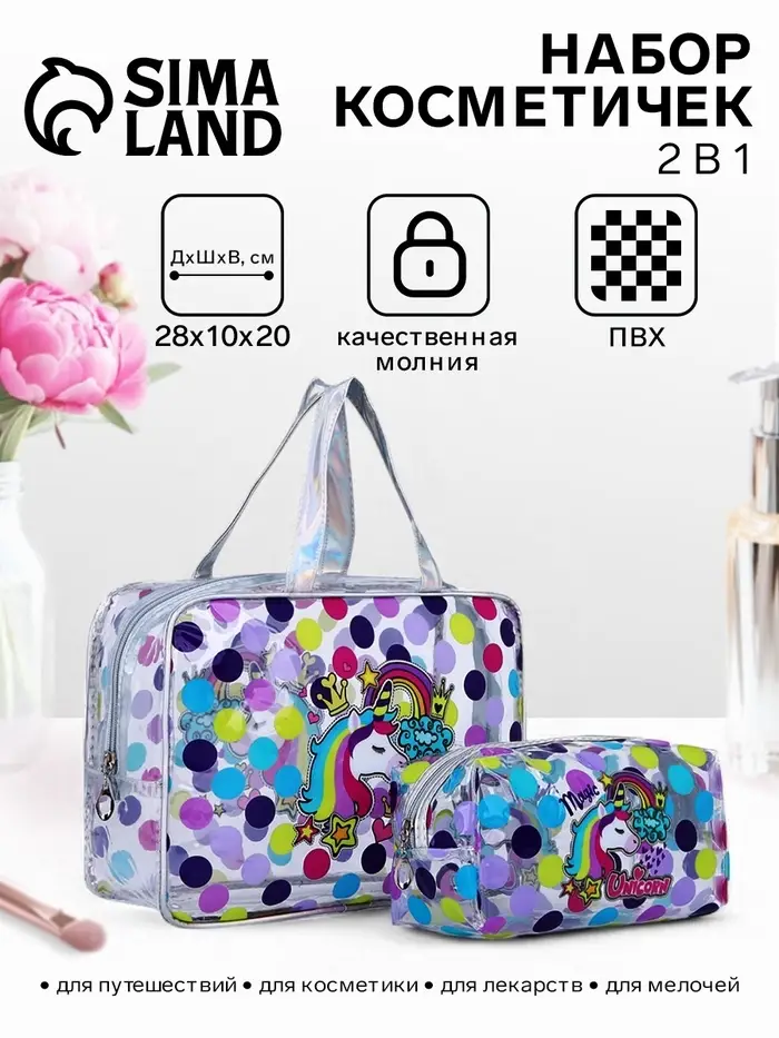 Набор косметичек для бассейна 2 в 1, с рисунком, разноцветный