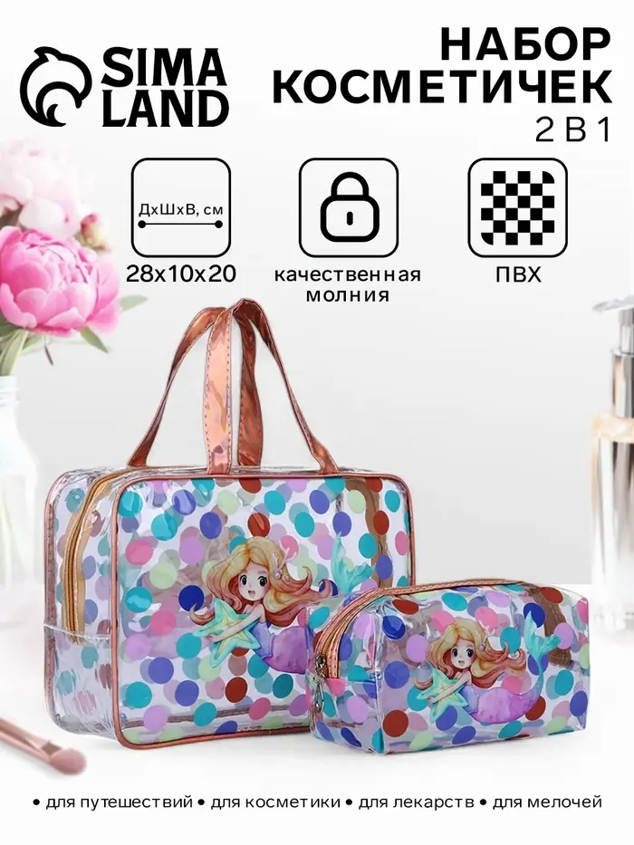 Набор косметичек для бассейна 2 в 1 «Русалка», с рисунком, разноцветный