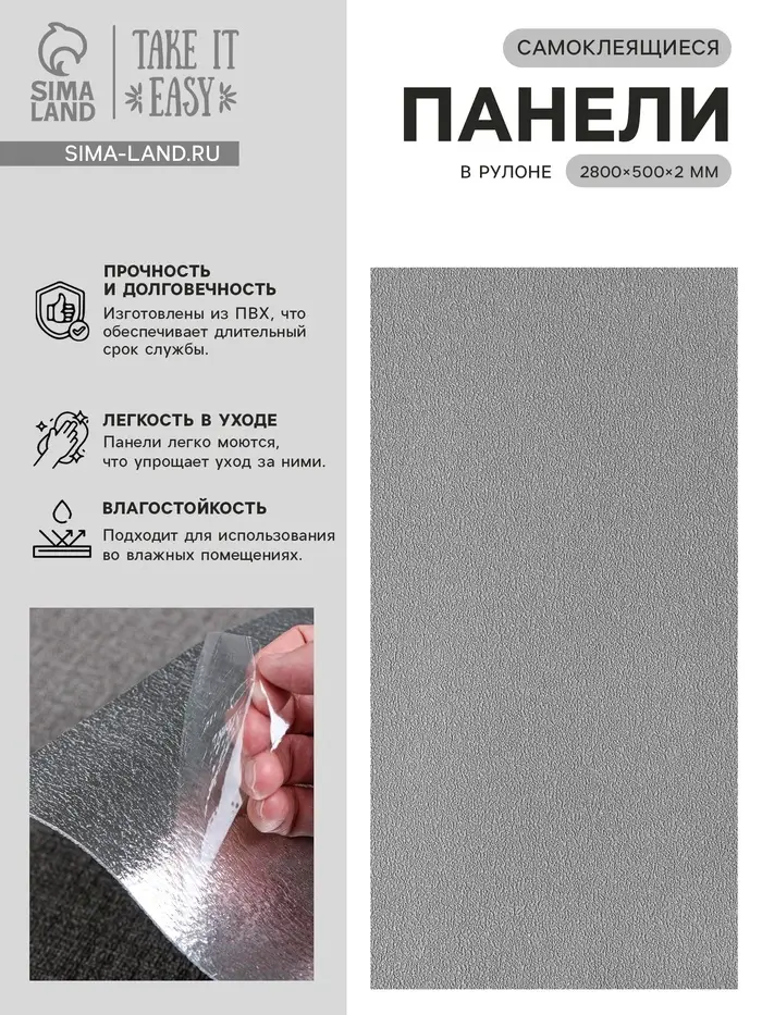 Панель ПВХ самоклеящаяся TAKE IT EASY, в рулоне, 2800×500×2 мм, цвет тёмно-серый