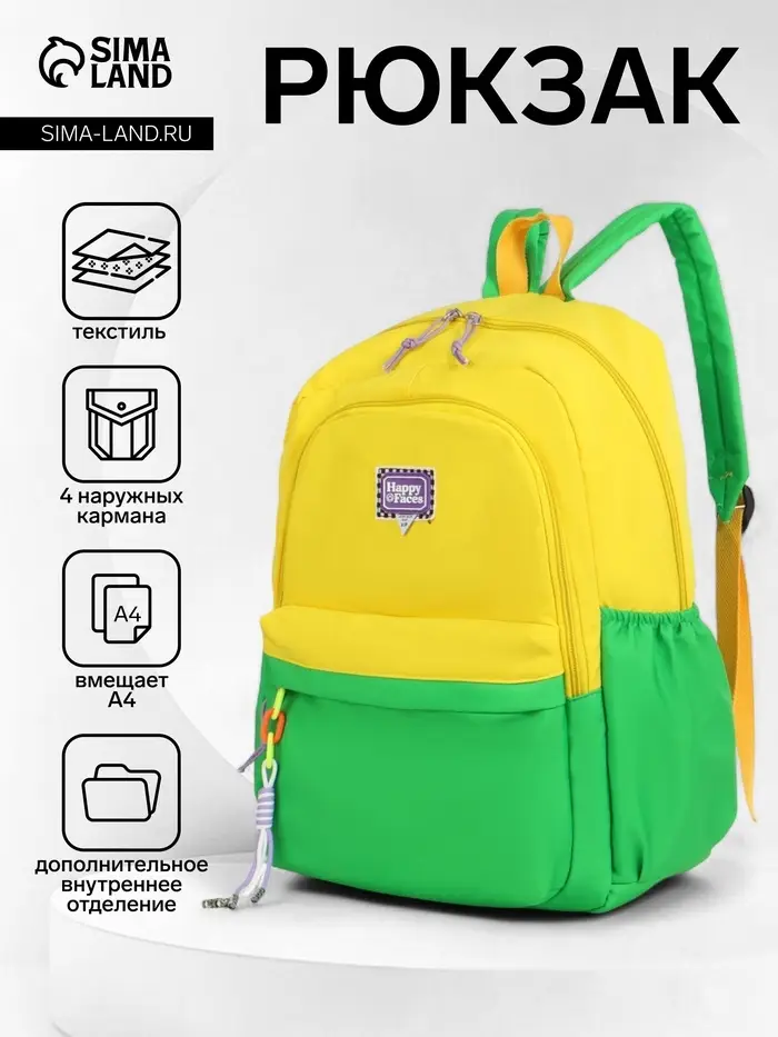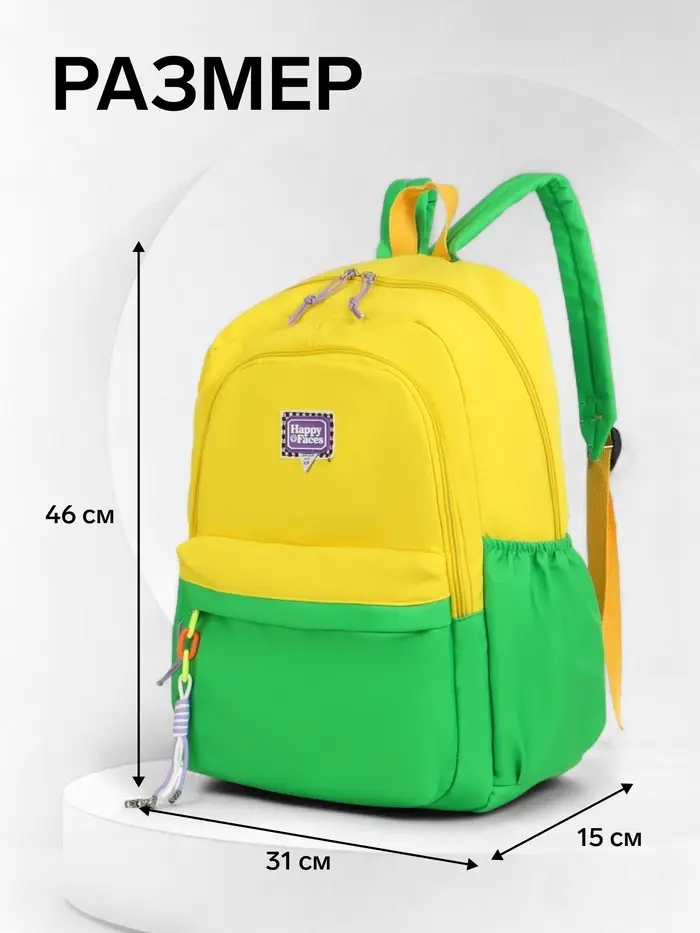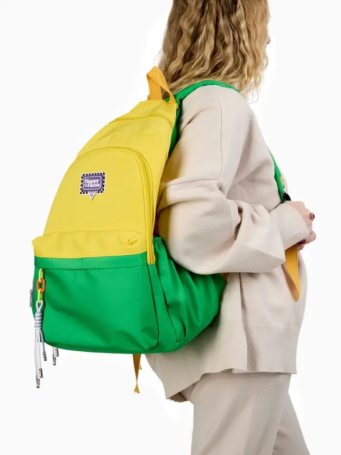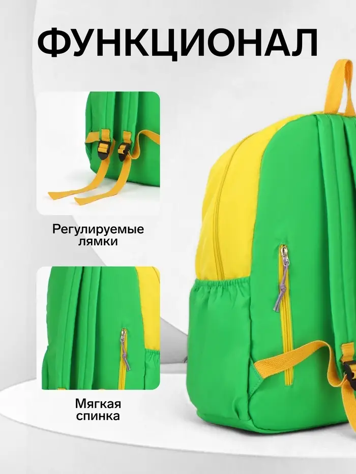 Двухцветный жёлто-зелёный рюкзак — надёжный спутник для школьных будней и активного отдыха. Мягкая спинка и два отделения с молниями создают комфорт и порядок. Стильный дизайн подчеркнёт индивидуальность.