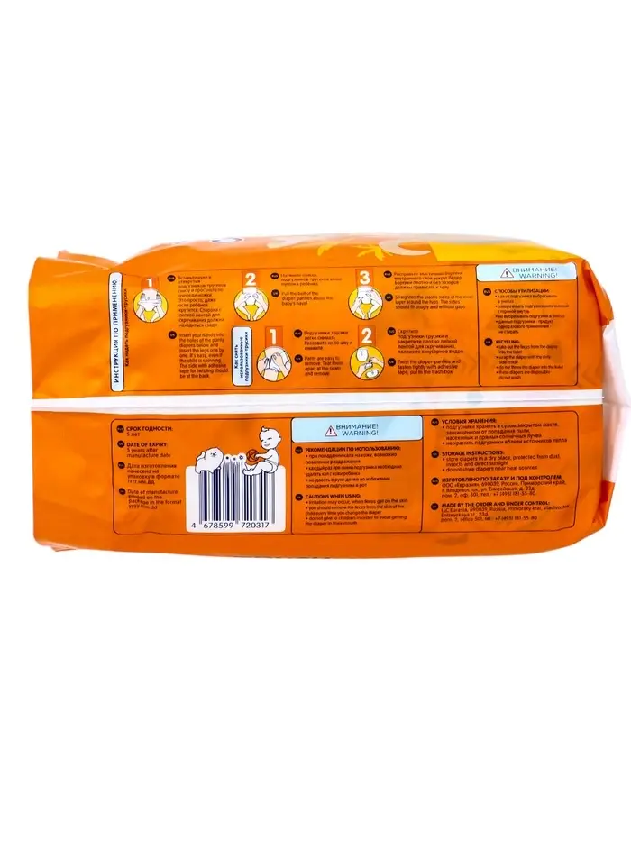 Для внутренней поверхности подгузника используется двухслойный материал, поэтому поверхность всегда остается сухой. 3D-рельеф поверхности уменьшает площадь касания подгузника с кожей ребенка, что помогает избежать раздражения.