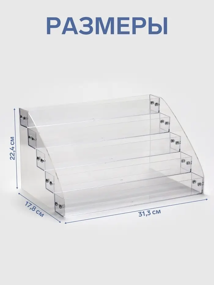 Погрузитесь в гармонию стиля и функциональности с нашей многоуровневой подставкой для лаков. Этот органайзер для маникюрных принадлежностей, выполненный из прочного оргстекла толщиной 2 мм, станет неотъемлемой частью вашего пространства, сочетающим в себе элегантность и практичность.