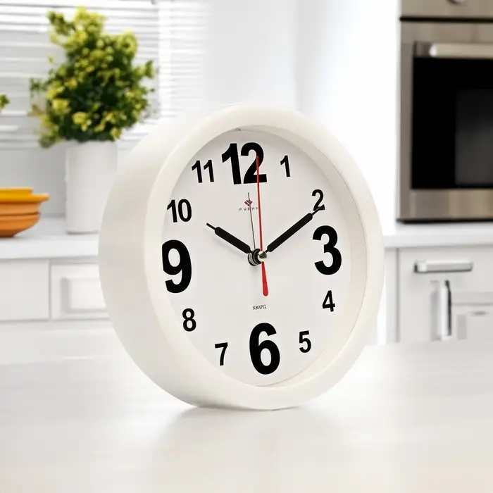 Будильник-часы настольные «Классика», дискретный ход, d=15 см, 16.5×16.5 см, от батарейки АА