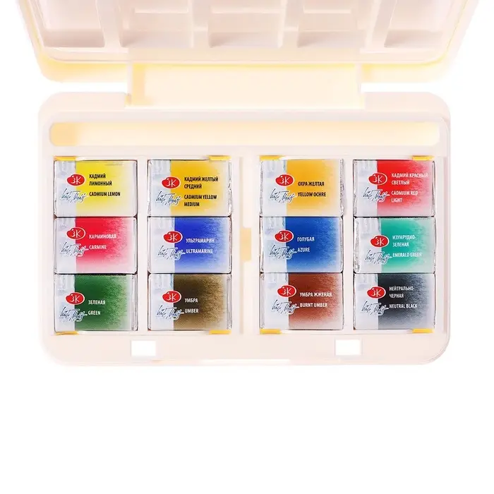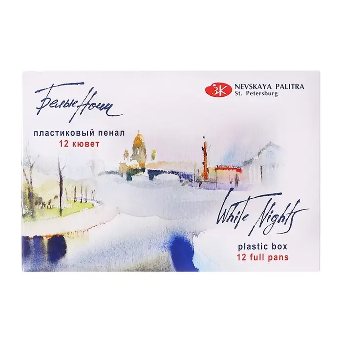 Акварель художественная в кюветах, 12 цветов × 2.5 мл, ЗХК «Белые ночи», пластиковая палитра