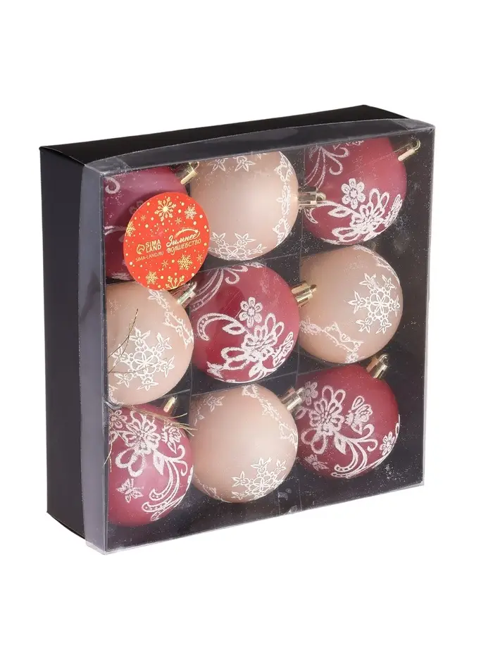 - Комплект из 9 шаров с изящным узором.