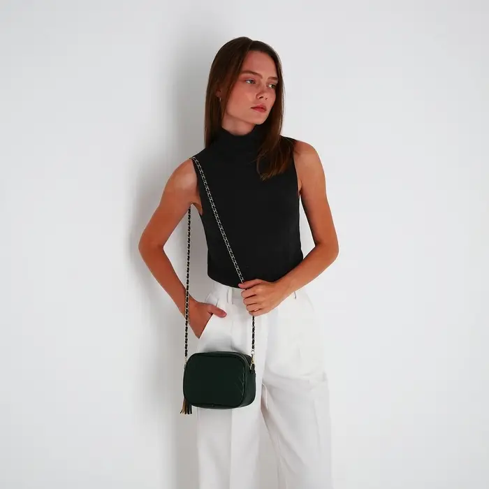 Сумка женская кросс-боди на молнии, 21×7×14 см, зелёный