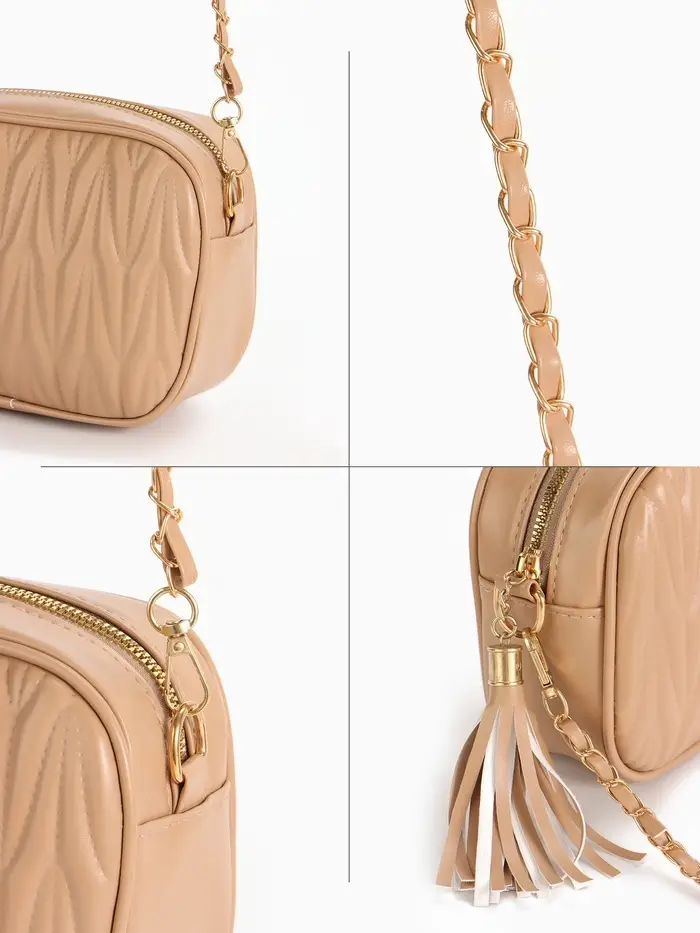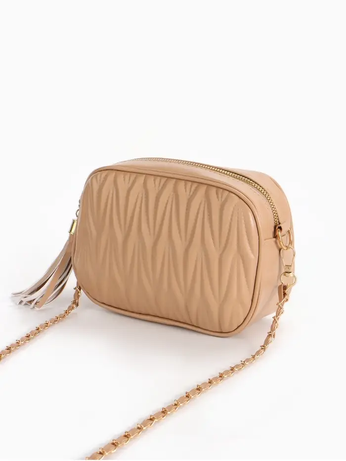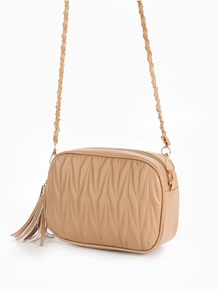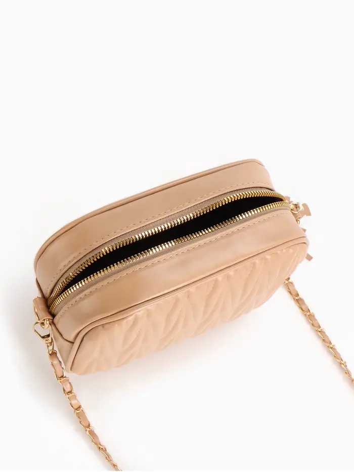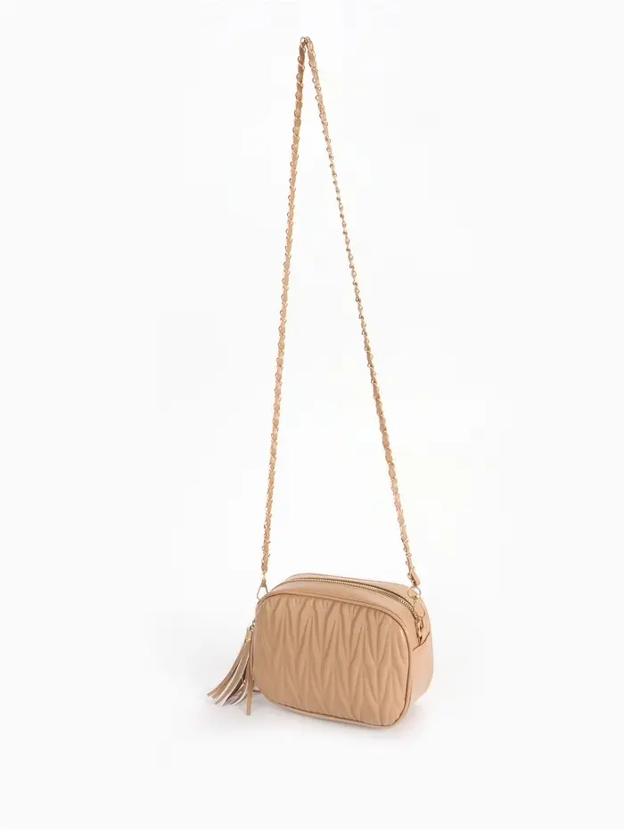 Сумка женская кросс-боди на молнии, 26×10×16 см, бежевая
