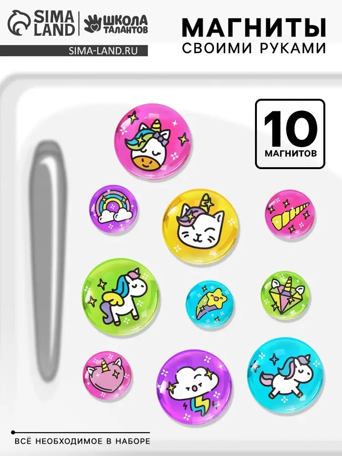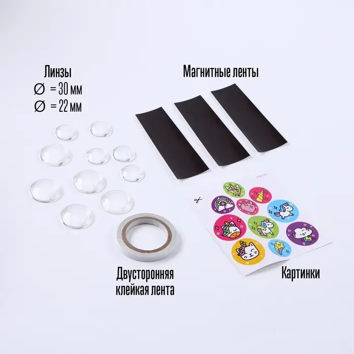 С набором для творчества ребёнок сможет сделать 10 значков своими руками! Готовые изделия станут ярким акцентом в образе — достаточно прикрепить значок к одежде или рюкзаку. Также аксессуары будут милым подарком для близких и друзей.