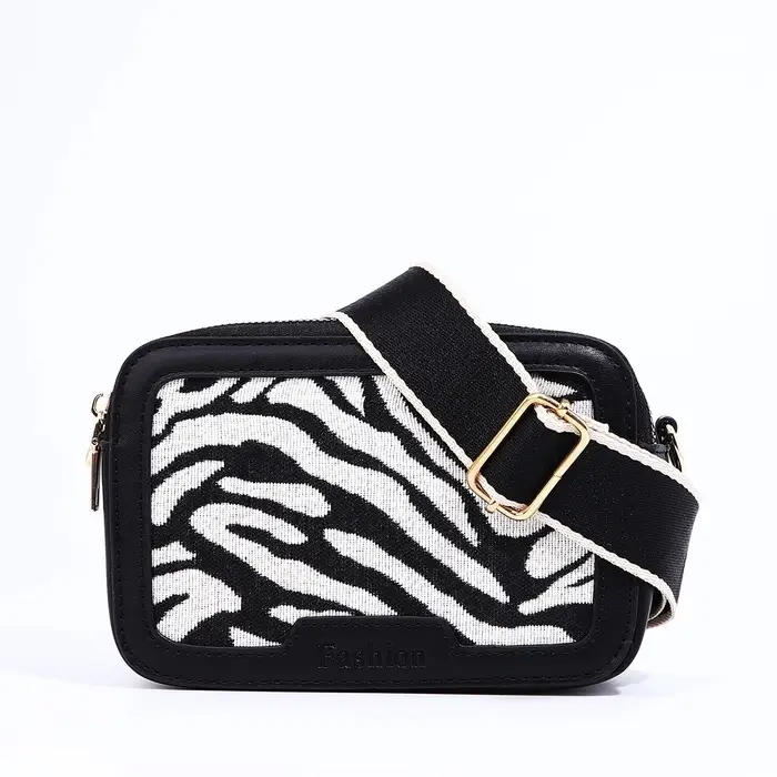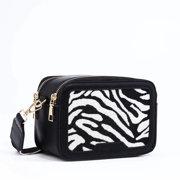 Сумка женская кросс-боди на молнии, 18×7×16 см, с животным принтом, чёрная