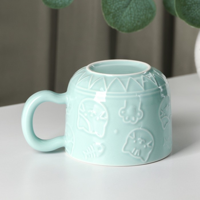 Кружка керамическая «Улыбающийся кот», 450 мл, цвет голубой