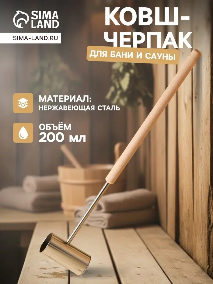 Удобство в использовании: Компактный и легкий, такой черпак становится незаменимой частью банного обряда, превращая каждый сеанс в уникальное наслаждение. Подарите себе и своим близким возможность полностью расслабиться и насладиться атмосферой русской бани! Этот практичный аксессуар станет отличным подарком для ценителей традиционных банных процедур.