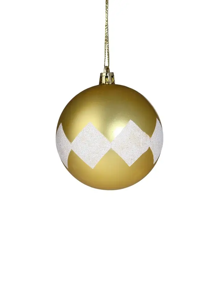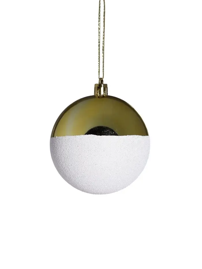 Набор из 19 бело-золотых ёлочных украшений с изящными узорами объединяет в себе стили ар-деко, классики и советской эпохи. Эти пластиковые игрушки создают праздничное настроение и дополняют интерьер традиционным, но при этом актуальным декором.