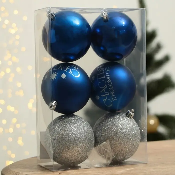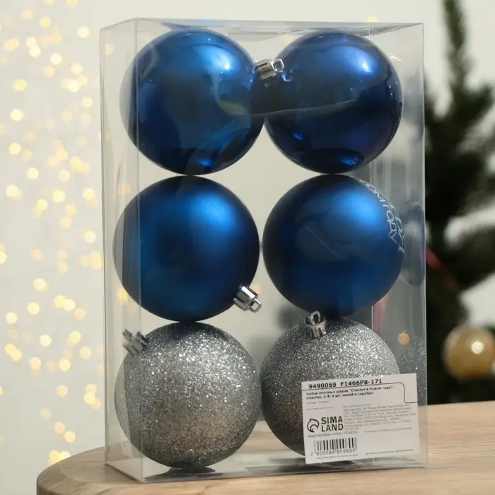Шары ёлочные «Счастья в Новом году!», пластик, d=8, 6 шт., синие, серебристые