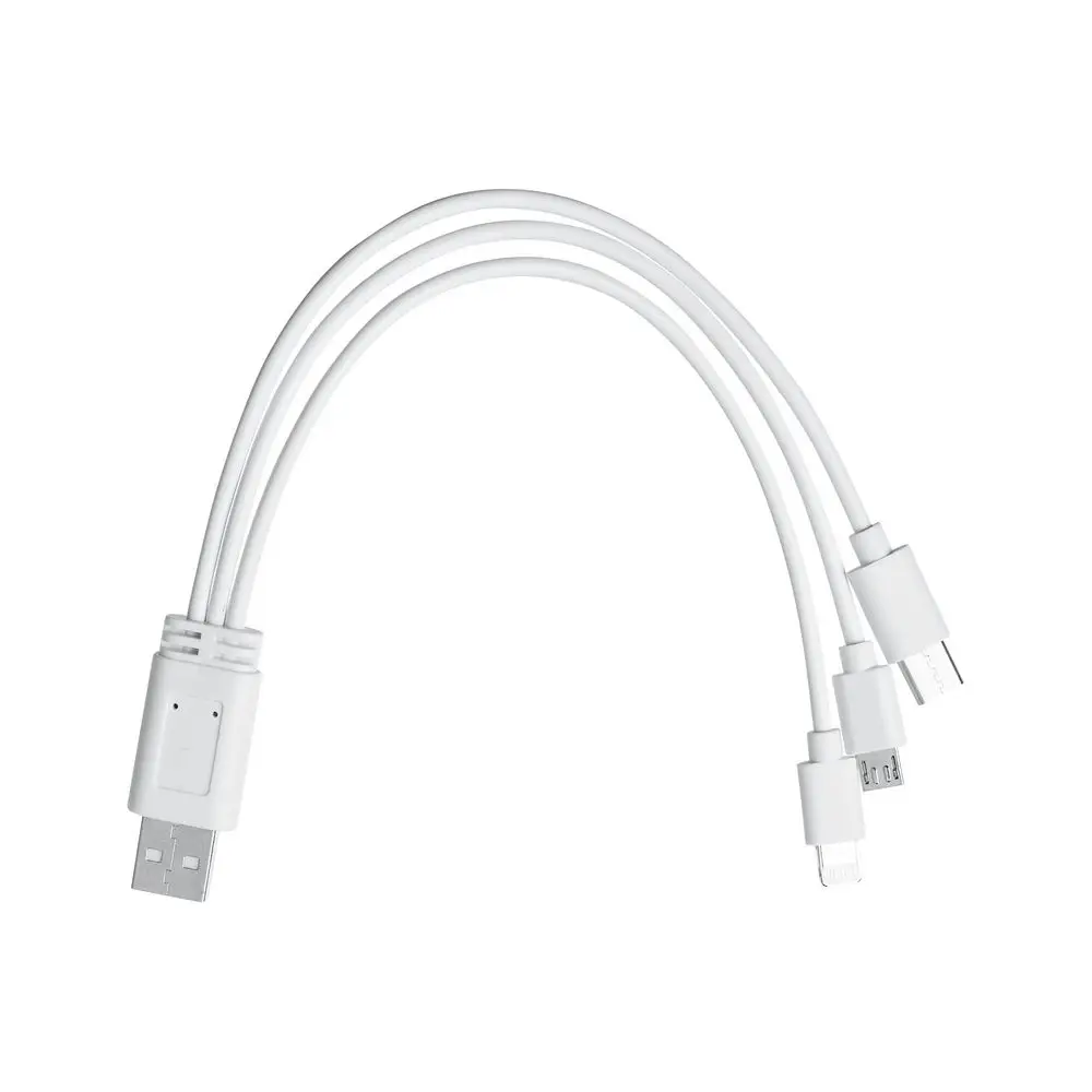 - В комплекте кабель с разъемами Type-C, Micro-USВ и iPhone 5...14.