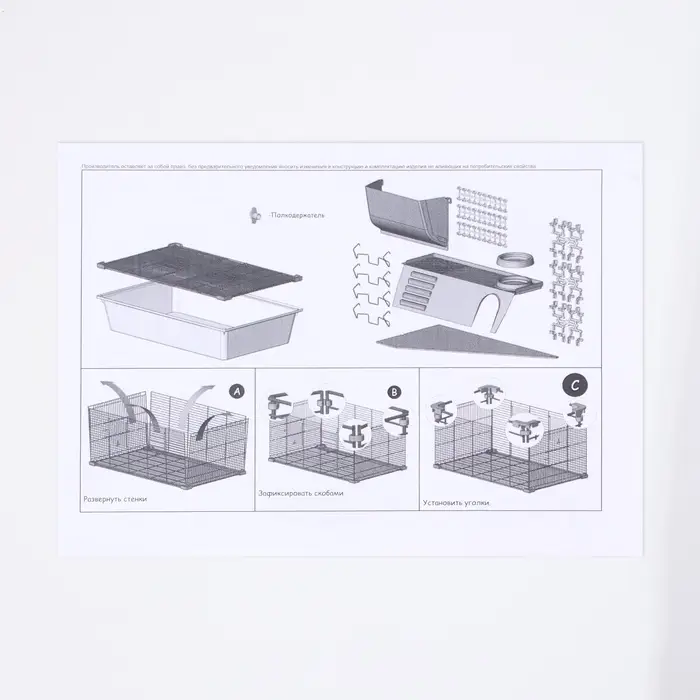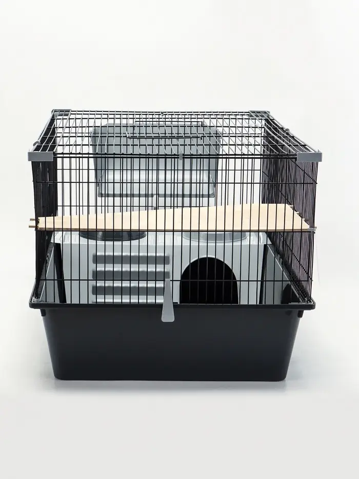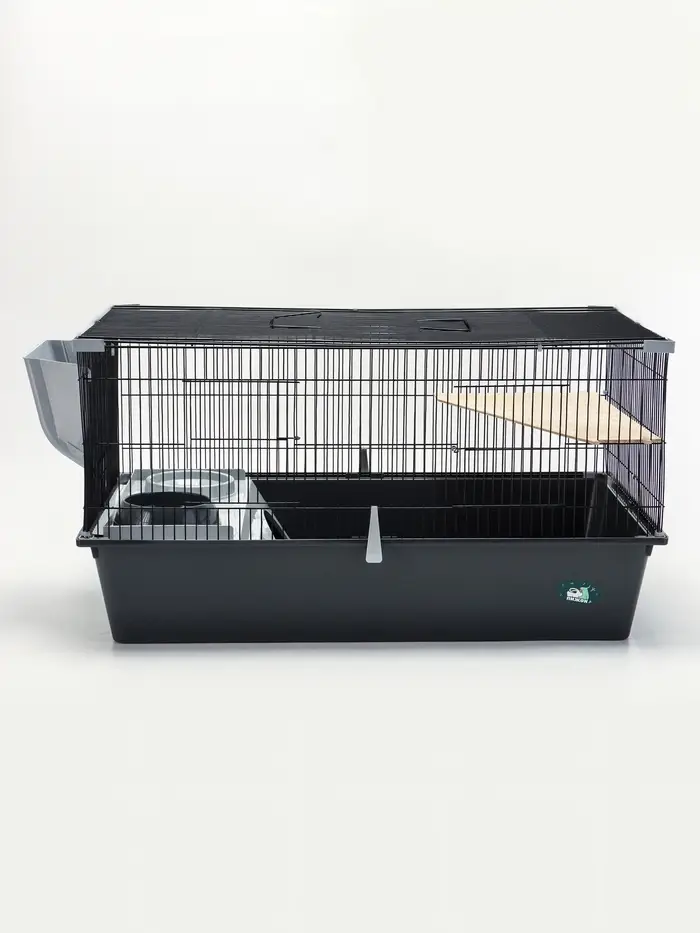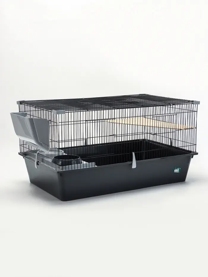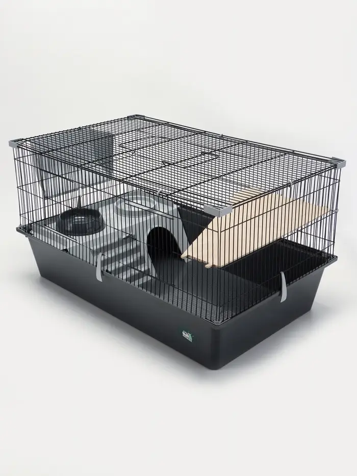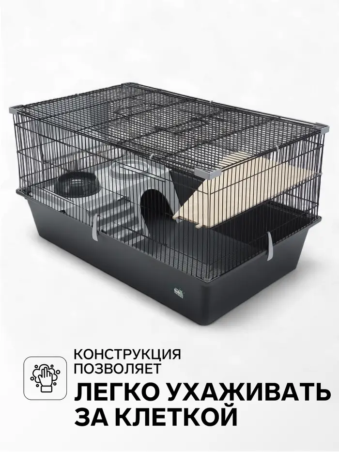 - Просторные габариты — 80×50×46 см: внутри достаточно места для одного питомца. Даже крупная шиншилла свободно разворачивается и прыгает между уровнями.
