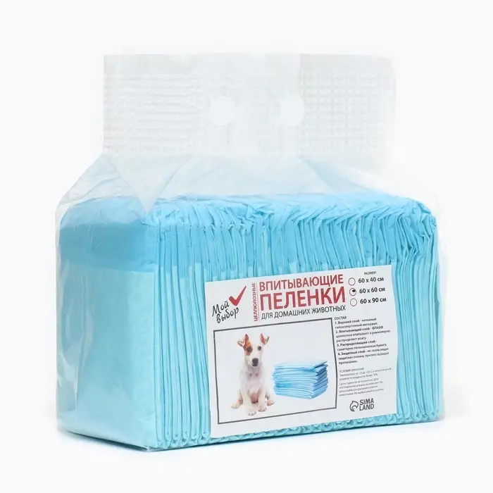 Пелёнки впитывающие «Мой выбор», 60×40 см, набор 30 шт., целлюлоза