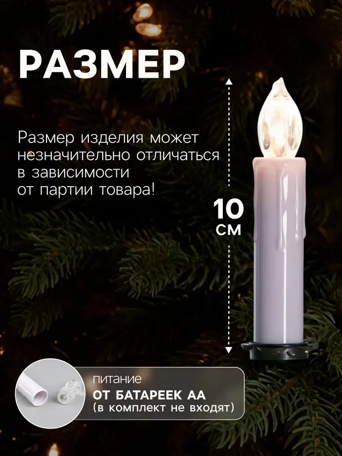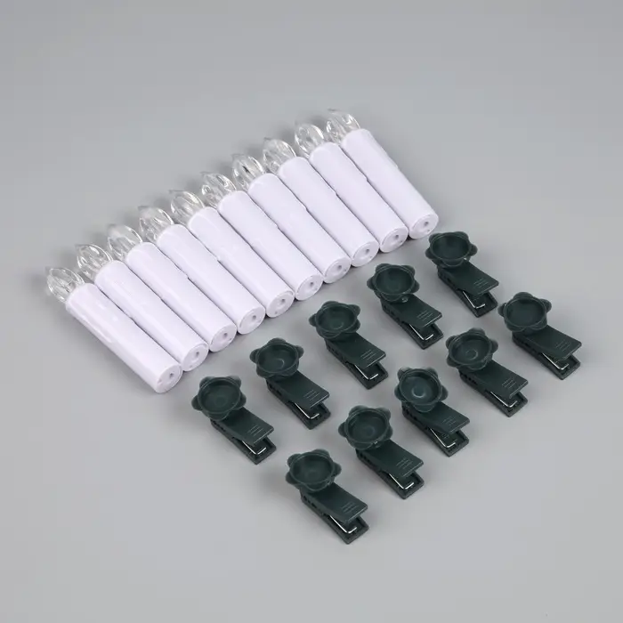 Светодиодные свечи на прищепках 10 см, 10 штук, от батареек ААх1, пульт ДУ, свечение белое