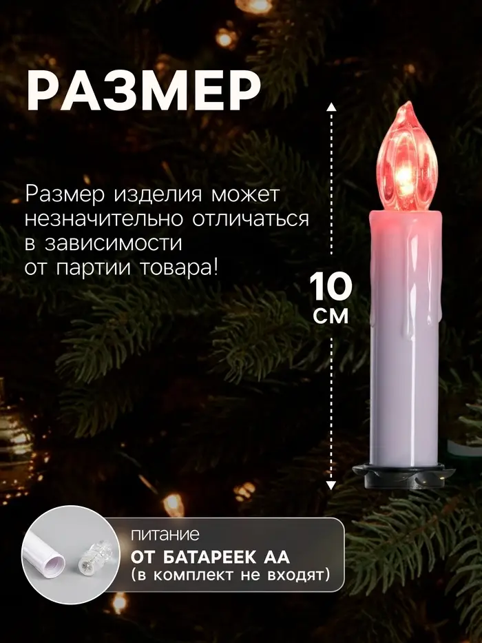 Светодиодные свечи на прищепках 10 см, 10 штук, от батареек ААх1, пульт ДУ, свечение белое