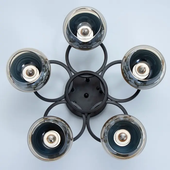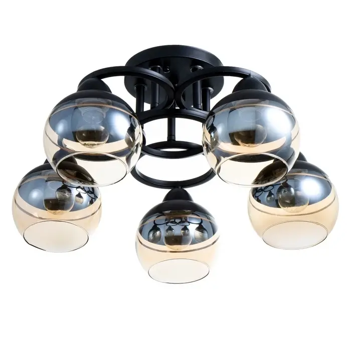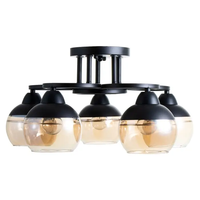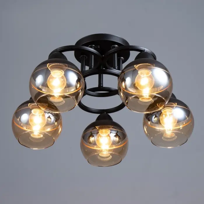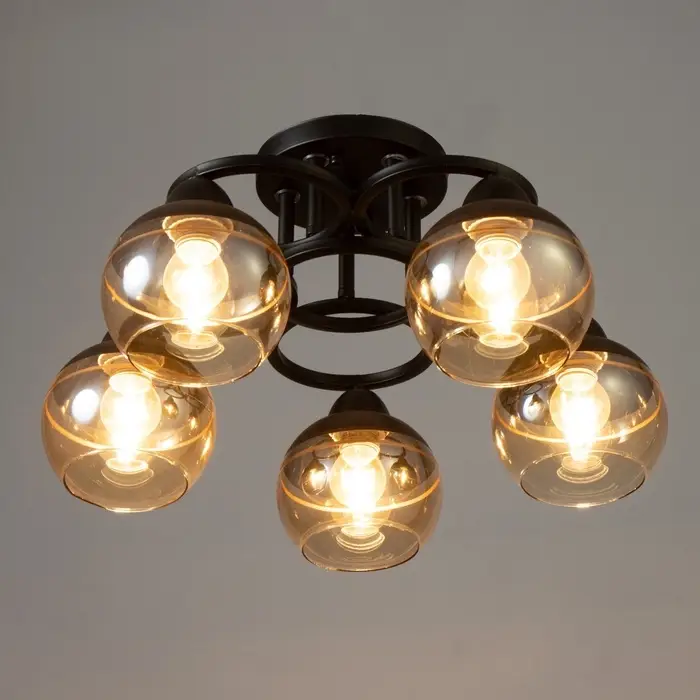 - Современный дизайн: черное основание и полусферический плафон из стекла придают люстре стильный и минималистичный вид, идеально подходящий для спален.