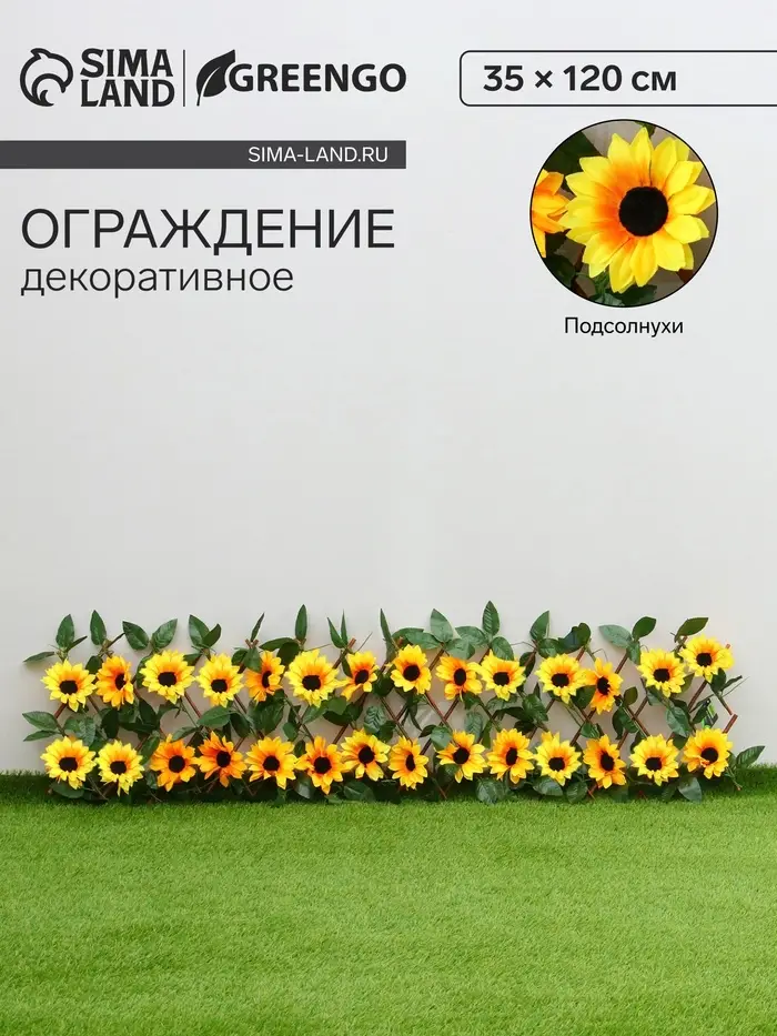 Ограждение декоративное, 35×120 см, «Подсолнухи», оттенок цветков МИКС, Greengo