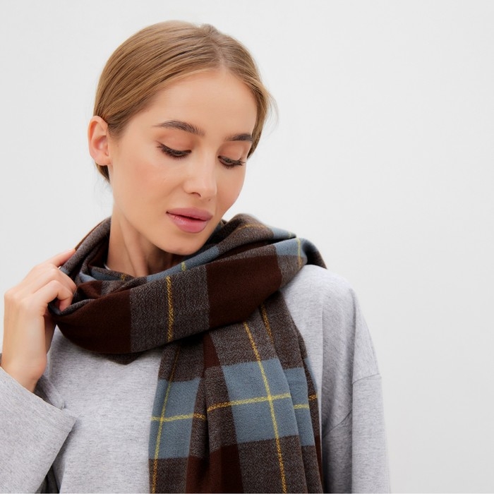 Шарф зимний с кистями MINAKU 65*180 + 3 см клетка