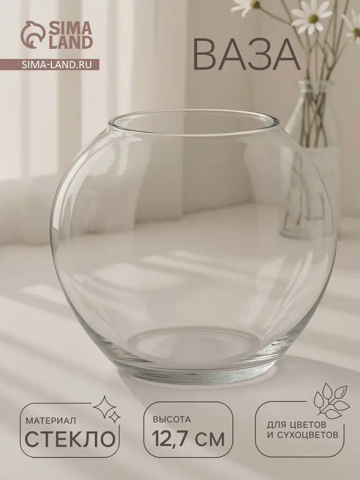 Ваза «Шаровая», 7.5 л, d горл. 15.5 см, 23×21 см, стекло, прозрачная