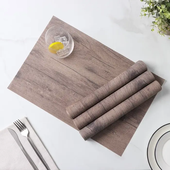 Размер каждой салфетки составляет 45×30 см, что идеально подходит для сервировки как основного блюда, так и легких закусок. Разработанные из прочного ПВХ, эти салфетки не требуют сложного ухода — достаточно протереть их влажной тряпкой, и они вновь готовы к использованию. Это делает их не только стильными, но и практичными помощниками на вашей кухне!