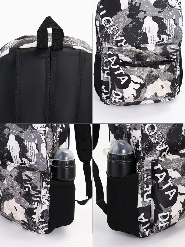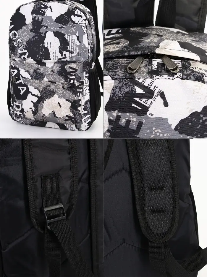 Этот чёрно-серый рюкзак с камуфляжным принтом создан для школьников, которые ценят практичность и стиль. Он станет надёжным спутником в учёбе и на отдыхе, вмещая всё необходимое для занятий и активного дня.