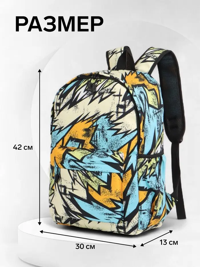 Рюкзак школьный, на молнии, три наружных кармана, 30×13×42 см, разноцветный