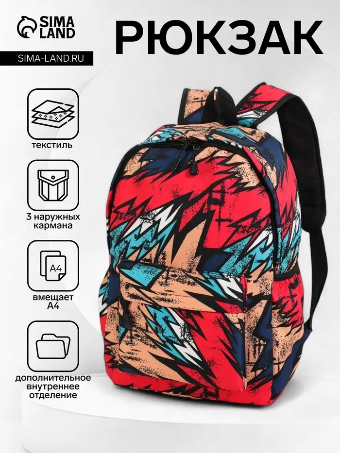 Рюкзак школьный «Абстракция» с карманами, 30×13×42 см, красный