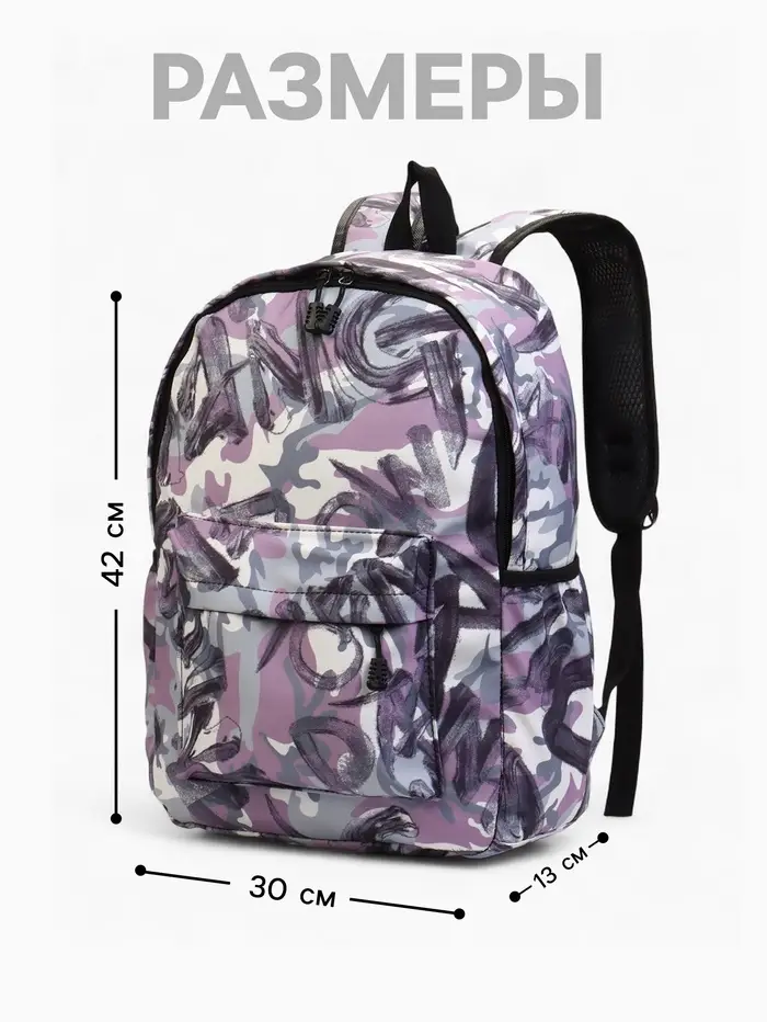 Рюкзак мягкий, но сохраняет форму. Он лёгкий и не создаёт лишней нагрузки, а продуманное внутреннее пространство помогает быстро находить учебники и пенал. Стильный принт делает его узнаваемым, а практичный цвет маскирует возможные загрязнения. Это выбор для тех, кто ценит удобство, порядок и яркий акцент в школьном образе.