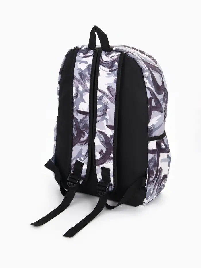 Рюкзак школьный на молнии, с карманами, с принтом, размер 30×13×43 см, чёрный