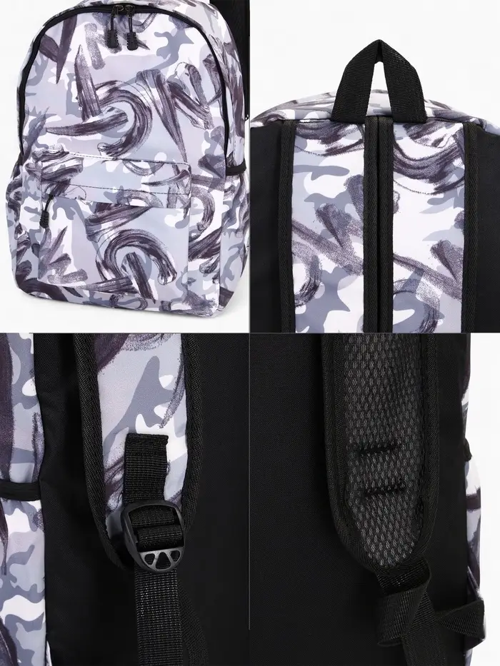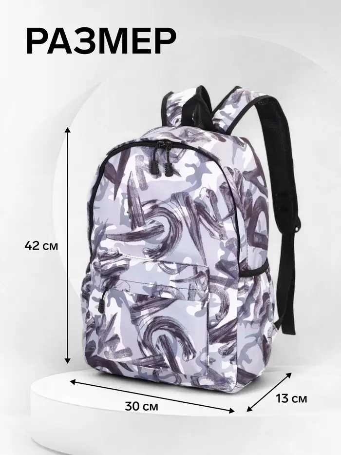 Рюкзак школьный на молнии, с карманами, с принтом, размер 30×13×42 см, серый