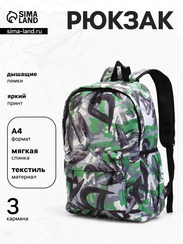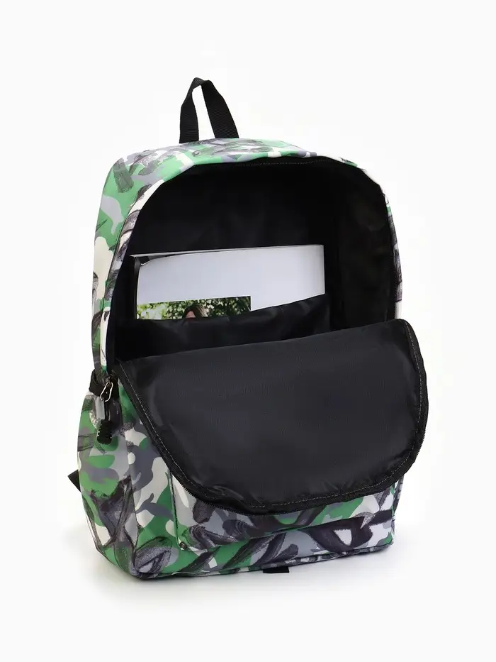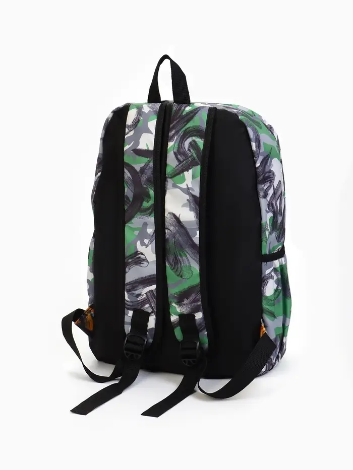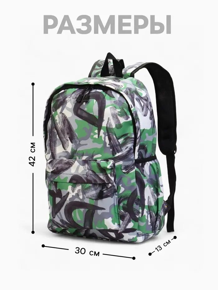 Рюкзак школьный на молнии, с карманами, с абстрактным принтом, размер 30×13×42 см, зелёный
